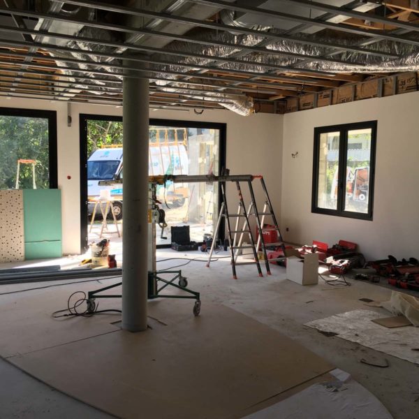 Réhabilitation et transformation d’un bâtiment de dépôt en commerce « Tournebroche Gueuleton » à Cozes