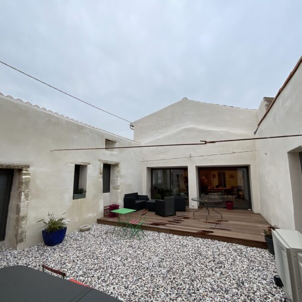 Transformation d’un préau d’une maison charentaise et aménagement d’une cuisine et salle à manger à Epargnes
